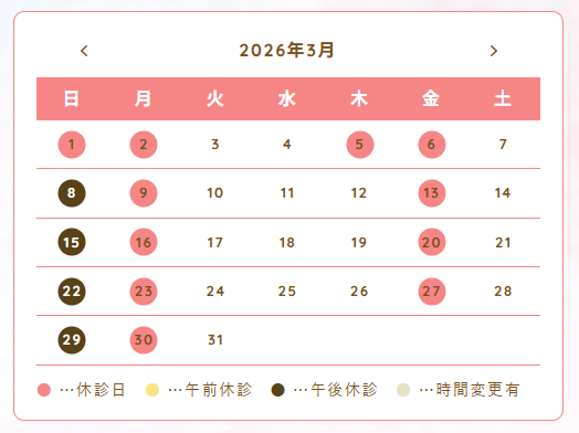 いつも当院をご利用いただき、ありがとうございます。3月の診療予定についてお知らせいたします。